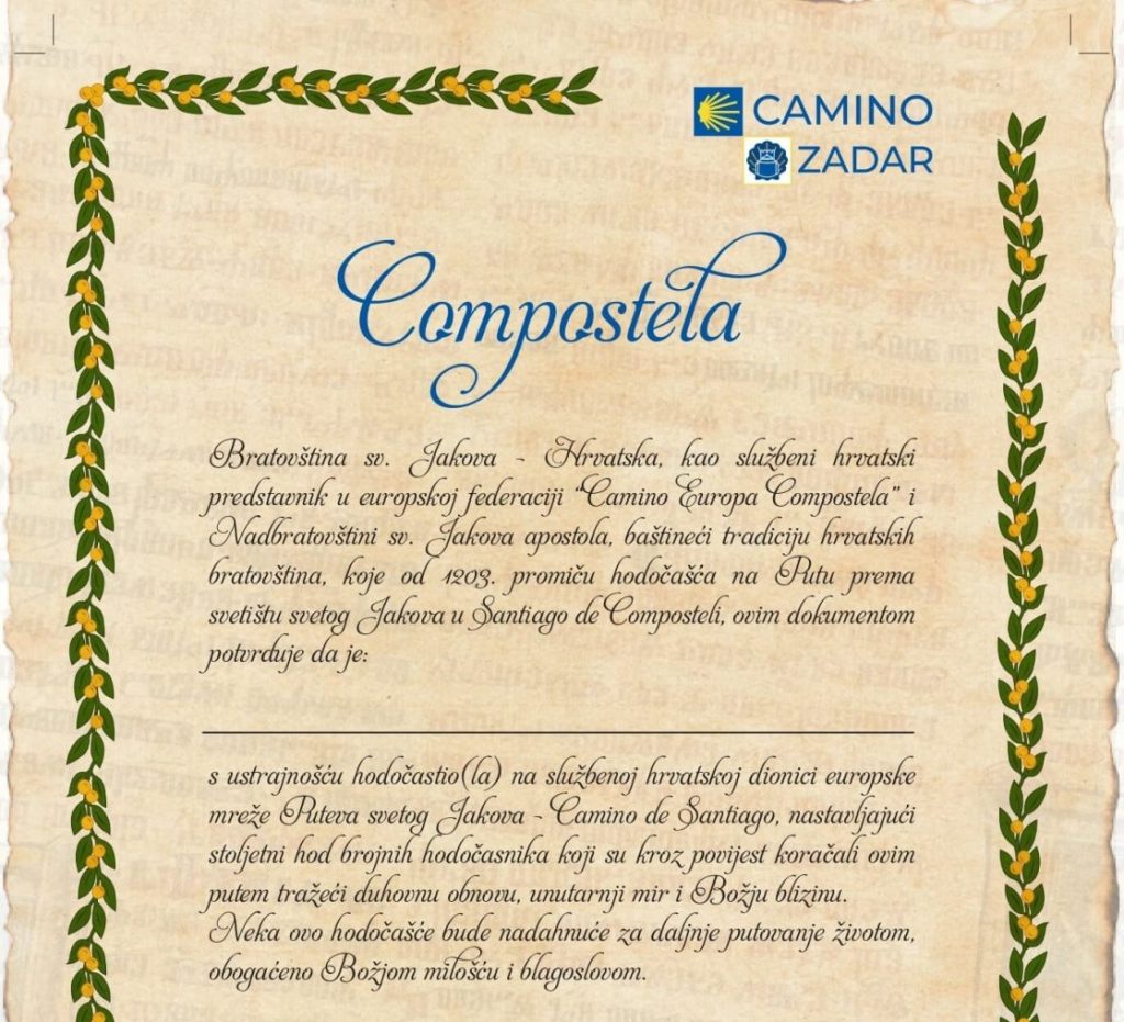 Može se dobiti u turističkim uredima ili kod organizacije Camino Croatia. U svakoj etapi skupljaju se pečati u crkvama, ugostiteljskim objektima ili smještajima.